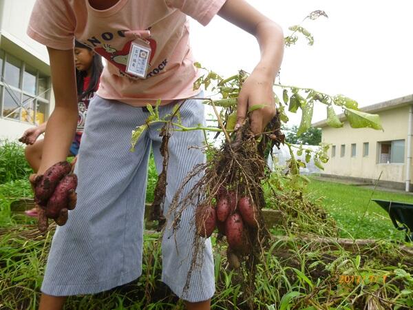 そして6年生は、「植物のからだのつくりとはたらき」特に光合成実験でお世話になったジャガイモの収穫。