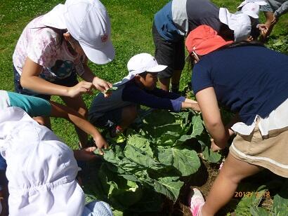 まずは、キャベツ畑に行って、卵を取りました。