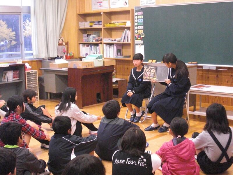 いざ、読み聞かせが始まると、3~6年生の子どもたちは、とても真剣に、そして楽しそうに読み聞かせを聴いていました。小学生の子どもたちが笑うたびに、中学生も緊張がほぐれていったのか、自然と笑顔になり、楽しそうに読み聞かせを行ってくれました。