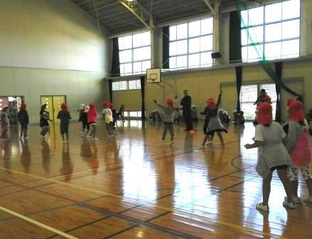 第1試合は外野の人数が1人差で2組が、第2試合は5人差で1組が勝ちました。決着はつきませんでしたが、悔しがる様子もなく、勝てたことを喜ぶ子どもたちでした。
