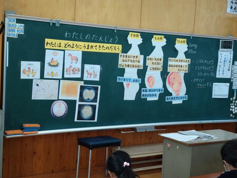 先日、1年生対象に養護の先生の性教育がありました。どんな内容になるのだろう?と思いながら参観しましたが、赤ちゃんが生まれてくる様子を映像等を交え、子ども達も興味深く見ていました。その後、赤ちゃんに見立てた人形を一人一人抱っこして、お母さんの思いを疑似体験しました。授業の最後には「お母さんがどれだけ大変かがわかった。命を大切にしたいと思った」という感想が出て、貴重な学びができたようです。
