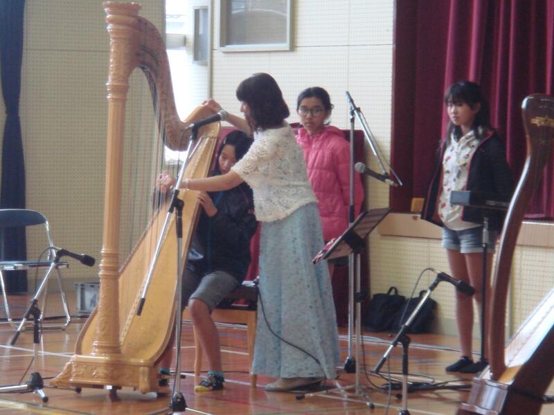 今年は、「リラの会」のみなさんによるハープの演奏会でした。日頃触れることの少ないハープの美しく流れるような演奏に、子ども達は目を輝かせていました。また、ハープ体験コーナーやハープの演奏に合わせて歌うコーナーもあり、表現のすばらしさや楽しさを味わうことができました。最後は、全員ハープをさわらせていただき、とてもうれしそうでした。