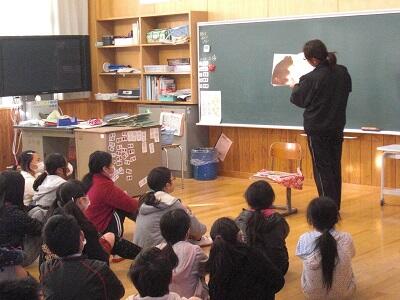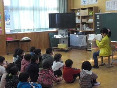 今回は、新年を迎えたばかりということで、干支についての絵本や今年の干支である“犬”が登場するお話がたくさんありました。各学級の様子を写真で紹介します。