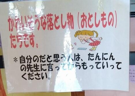 先日、校内を回っていると、2つの深い(個人的でしょうが)掲示を見つけました。1つは5年生の習字作品。こうも「読む」が掲示されていると、「何を読むのだろう、本またはこれから先、人の心…」と勝手に思ってしましました。もう1つは児童玄関前にある机にはってある掲示。この机の上にはいくつかの落し物がありました。早く持主のもとに戻りますように…と思わず思う掲示でした。