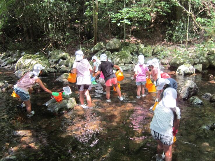 それぞれの課題をもって見学に行き、川の流れの様子を観察したり、水温をはかったり、生き物(エビやカニ、カゲロウなど)を見つけたりと、充実した時間を過ごすことができました。