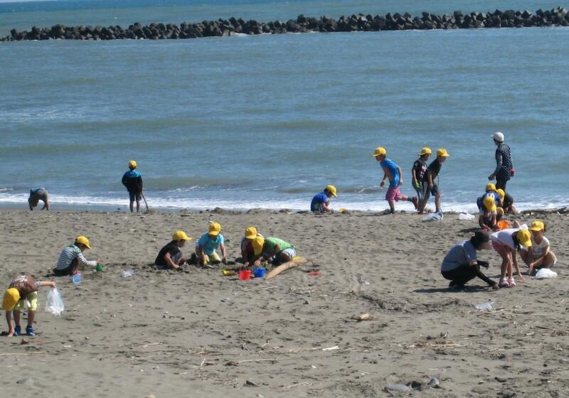 2年生は、徒歩と電車での移動で、高鍋町の蚊口海浜公園に行きました。雲一つない青空の下、海岸で石や貝殻を拾ったり、砂でいろいろなものを作ったり、公園の遊具で元気いっぱいに遊び回っていました。