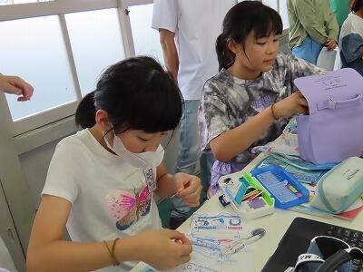 【5年生家庭科。「玉結び、玉留め、波縫い」の練習です。】