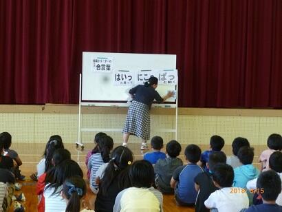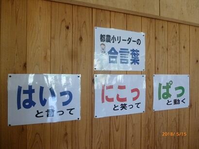 まず、リーダーの合言葉として「はいっ」「にこっ」「ぱっ」という言葉を伝えました。