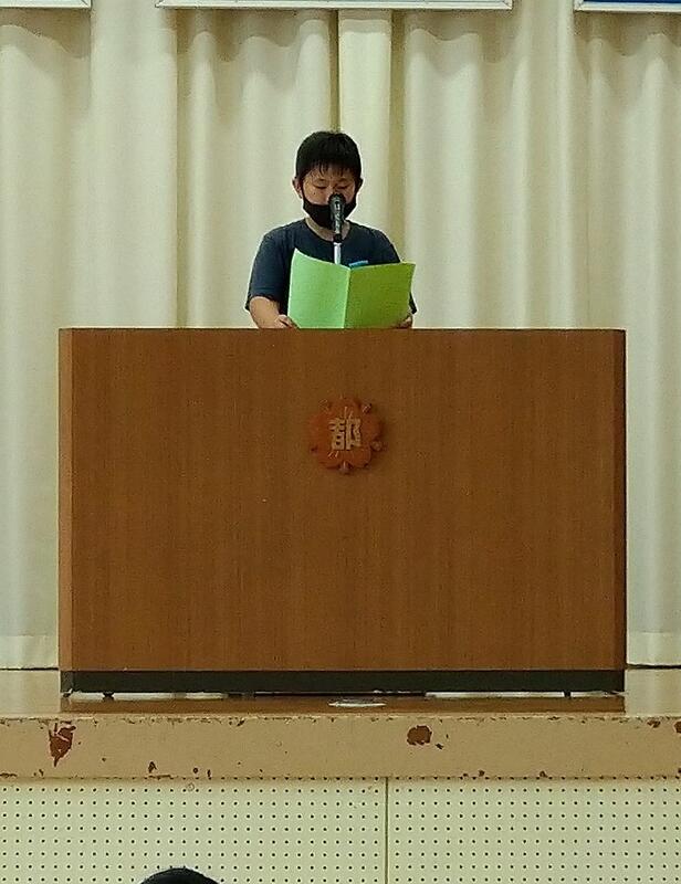 夏休みに入り、どんな生活を送っていますか?「早寝・早起き・朝ごはん」「命」…終業式で聞いた話を意識した毎日を送ってください。さて今日はこの式で発表してくれた4年生2人の内容の一部を紹介します。2人とも堂々と発表することができました!