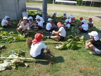 1学期、本当に大きく成長し、3年生だけでなく、全校の子ども達にたくさんの感動をくれた「ビッグヒマワリ」。理科の時間を使い、その子孫を残すべく「たね取り」をしました。