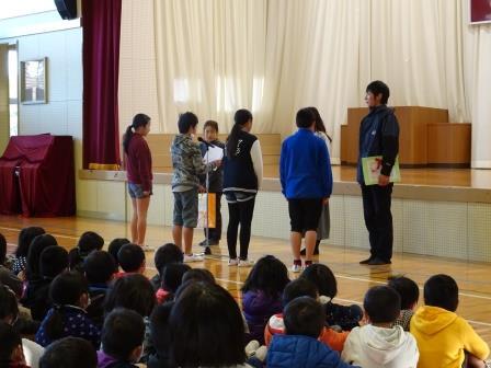 2月3日(金)の朝の時間は、給食感謝集会がありました。日頃お世話になっている先生方3名をお招きして、お礼の手紙をお渡ししました。