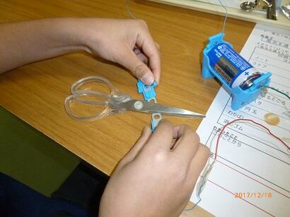 導線と導線の間にものをはさんで明かりがついたということは・・・?電気を通すものだ!