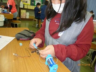 【空き缶は、鉄やアルミニウムだけど、明かりがつかない。でも、塗料をはがすと明かりがついた。】