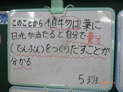 学習問題は「植物は葉に日光が当たると自分で養分を作ることができるのだろうか?」です。