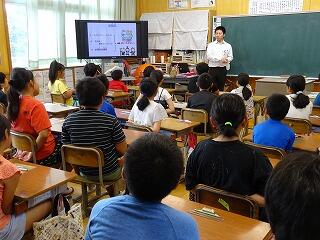 高鍋保健所の方から、川の役割、どんな水が川に流れているのか、川を調べる方法等のお話をしていただきました。一人一人が工夫して水を大切に使うことが大切だということを学びました。