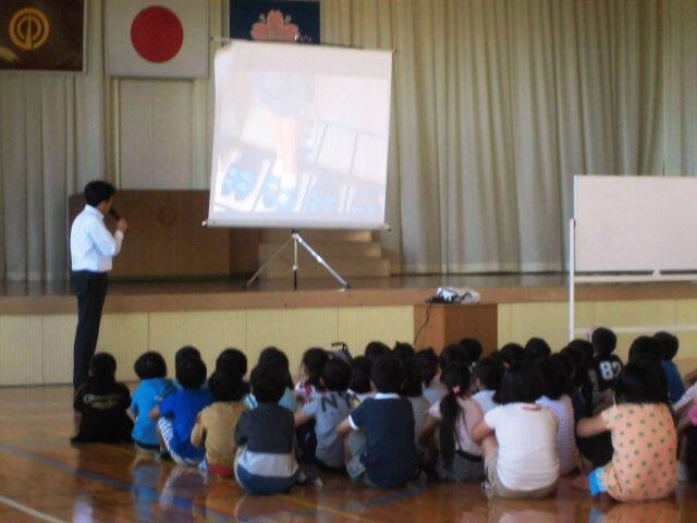 10月19日(月)の業間の時間に、体育館で「トイレのスリッパ並べ」についての指導集会が行われました。「トイレのスリッパ並べ」をより良くするための3つのポイントを確認しました。
