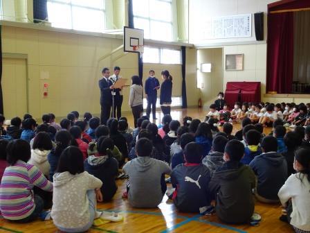 3月21日(火)の業間の時間は、表彰集会がありました。善行児童や読書感想画コンクールで賞をとった子、各種テストで100点だった子どもたち、みんなでテストに向けて頑張ったクラス、おそうじ名人の子どもたちなど、たくさんの子どもたちの頑張りが称えられ、嬉しそうな顔がたくさん見られた集会でした。