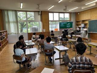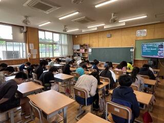 どの学級も、モニターを見ながら係の先生の話を真剣な表情で聞いていました。