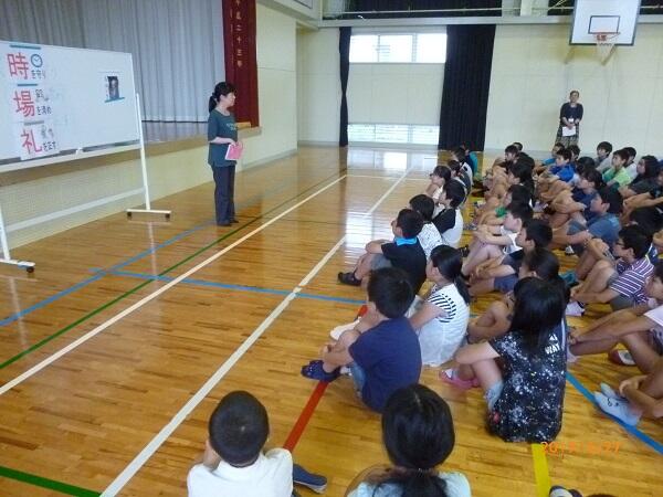 まずは、「朝の声出し」です。今日は5年生の河野 諒くんがリーダーとなって進めてくれました。
