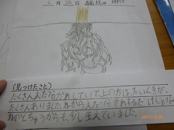 これまで、ホウセンカの葉やくき、花の観察を続け、その成長に感動してきた3年生ですが、今回は、土の中にかくれて普段見えないけれども存在する大切なもの。そう、根の観察です。