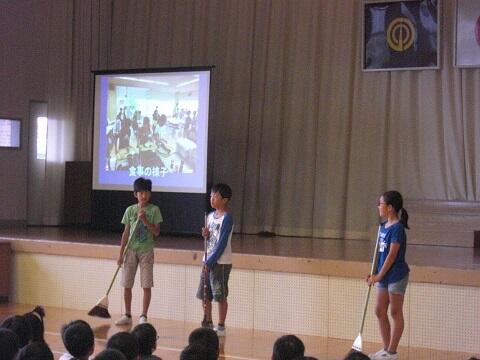 「青島少年自然の家」での宿泊学習で学んだ「規律」「協働」「友愛」「奉仕」について堂々と発表し始めました。