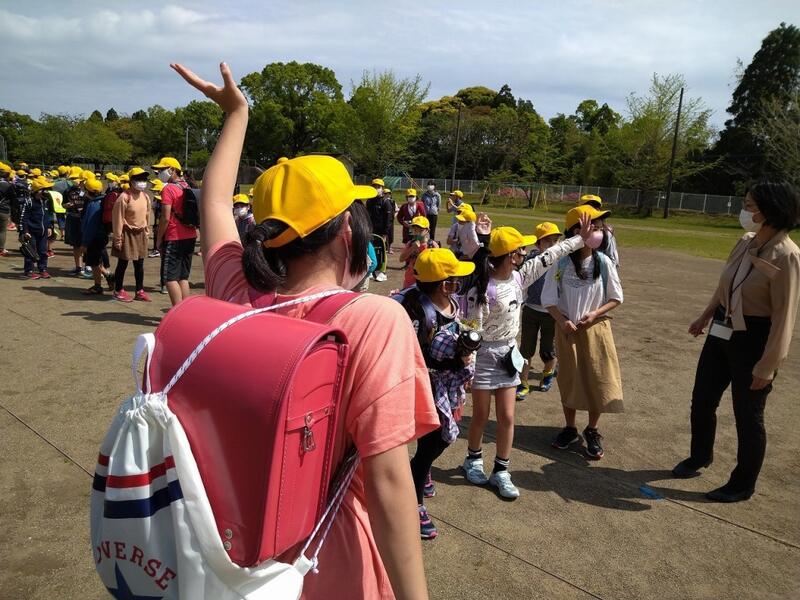 入学以来、1年生は先生が地区ごとに手分けして下校をしていました。その中、14日(水)、全校集団下校をしました。上級生、特に6年生がリードしながら、家まで安全・安心な帰路につきます。優しく声をかけたり、班員に目配りしたり、停まってくれた運転手さんに頭を下げたり、と6年生の「気づきの心」がとてもすばらしいと思いました。このことでお互いに笑顔があふれる、先輩にならって「よろこばせごっこ」を、これからも広げていきましょう。