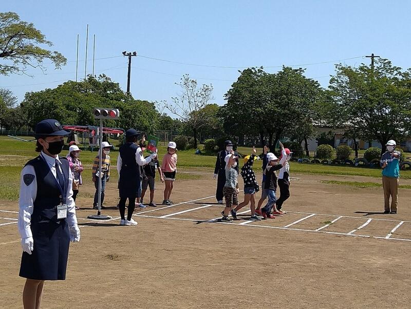 昨日に引き続き、とても気持ちのよい青空の下、1・2年生対象の交通教室を行いました。交通安全協会そして高鍋警察署の方に来ていただき、横断歩道や歩道橋の渡り方、信号機のある交差点の歩行の仕方など、実演を交えてわかりやすく教えていただきました。「手を上げて渡るのは運転手に知らせるサイン」だからこそ、しっかり手を上げて確認して渡る…命を守る大切さを改めて考えた時間でした。明日は3~6年対象で学びます。