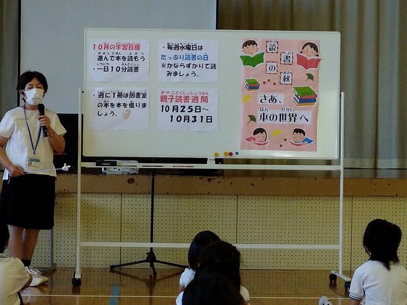 4日(月)、久しぶりに体育館で全校集会をしました。やっぱりみんなの顔を同時に見られるのは本当に嬉しいものです。もちろん感染防止対策はしっかりしました。この日は10月の月目標の紹介と、あいさつ標語の入賞者の表彰がありました。10月は「よろこばせごっこ強化月間」。たくさんの元気と笑顔を周りの人にいっぱい発信しましょう!