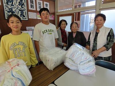 都農町老人クラブの皆様から、手縫いの雑巾を寄贈していただきました。