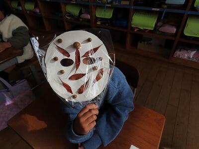 【「秋のどんぐり祭り?」の続きです。いよいよあのお面が完成したようです。】