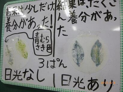 子どもたちの予想は「葉に日光が当たると、自分で養分を作ることができるのでは」