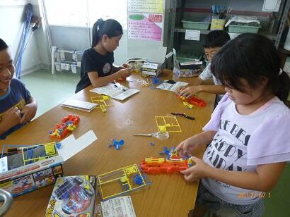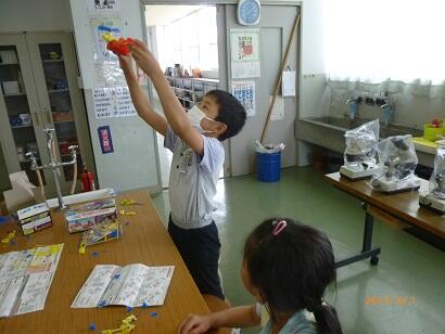 光電池に日光を当てる角度を工夫したり、下敷きでさえぎってみたり、日陰に入って実験したり、それぞれのめあてにあった実験を行っていました。