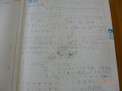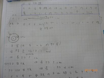 子どもたちは、初めて知ることが多く、驚きの声を上げていましたが、自分の命、友達の命がどのようにして誕生してきたのか、その「生命誕生」のドラマについて、深く考え、意欲的に学習していました。授業中の態度もですが、ノートを見るとその思いがさらに伝わってきました。