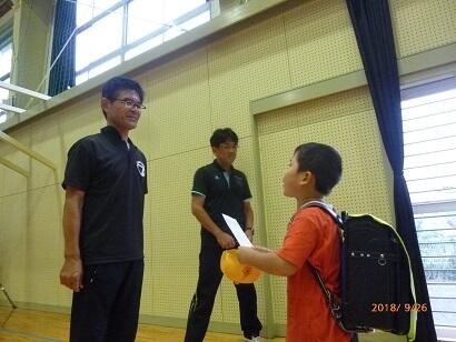 全校集団下校で行っている「あいさつ名人」。今回が2学期最初の選出となりました。