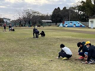 がんばる朝活・・・運動場の除草作業(緑化推進活動)