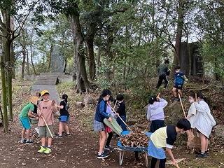 毎朝の朝のボランティア活動『朝活』に取り組む4年・5年・6年のがんばるまん達です。児童同士で励まし合いながら「スズメノカタビラ」の除草作業に取り組む毎日です。