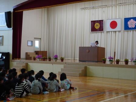 4月6日(木)、新年度がスタートしました!まず、新任式で新しい先生方をお迎えしました。子どもたちは4人の先生方の話を集中して聴いていました。