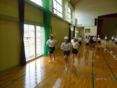 6年生の体育です。6年生は、体育が大好きです。いつも「全力」「工夫」「安全」「協力」を合言葉に元気いっぱい取り組んでいます。