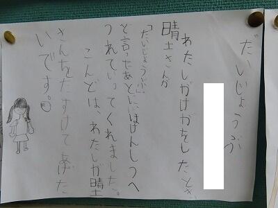 【「うれしいことば」がはり出されていました。どんな言葉を言ってもらえたのでしょうか?】
