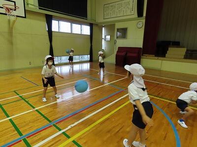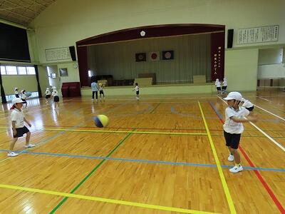 【ボール運動。さて、1年生の実力はいかに・・。】