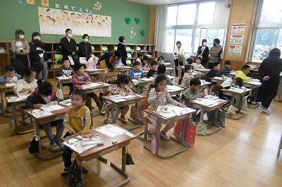 【おうちの人が、後ろにいてもキョロキョロせず、しっかり先生の話が聞けるようになりましたね!手の挙げ方も・・・】