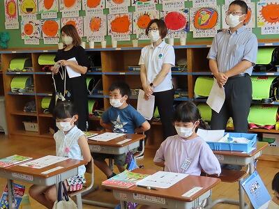 【テレビ画面に注目し、しっかり話を聞く子どもたち】