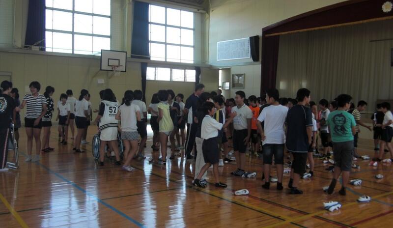 この5つをもう1度全員で確認した後、今日は友達同士のあいさつを活性化したいという願いで「友達あいさつゲーム」を行いました。自分のクラス以外の子とあいさつじゃんけんをするゲームですが、自然と笑顔があふれ、元気なあいさつができるようになりました。明日からは、校門から教室まで、10人以上の友達にあいさつするという新たな目標も決まり、「あいさつ日本一の学校」を目指していきます。