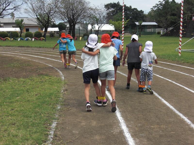 また、運動会では、4年生が団技「二人三脚」の練習を行っていました。最初は2人の息が合わず、うまく歩くこともできていませんでしたが、声をかけあったり、肩をしっかり組んだりと、様々な工夫をしていくうちにみるみる上手になっていきました。