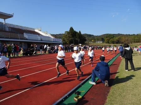 12月9日(金)、5時間目に持久走記録会を行いました。今年度から藤見陸上競技場での実施開催となりました。とても穏やかな天気で、絶好の持久走日和でした。