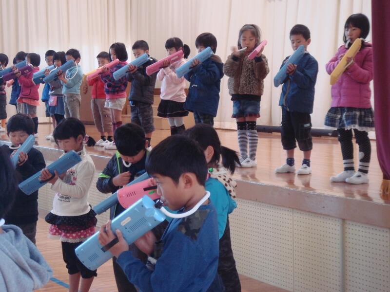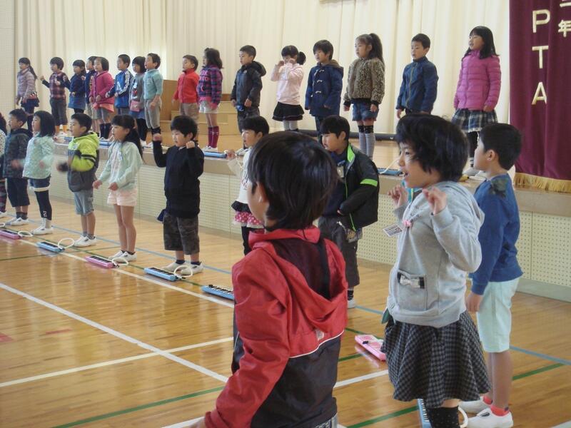 まず、鍵盤ハーモニカで「きらきらぼし」を演奏しました。伴奏に合わせて、上手な演奏ができました。次に、国語の教科書の中から詩「ありがとう」を男女に分かれて、強弱をつけながら発表しました。その後、「みみずのたいそう」を体を使って、楽しく音読しました。最後に、「ドレミのキャンディー」の発表をしました。音階を手で表しながら、リズムにのって楽しく歌いました。