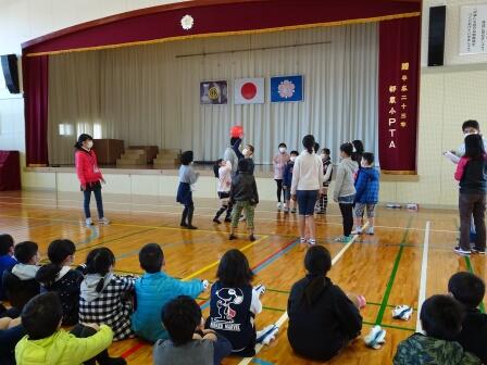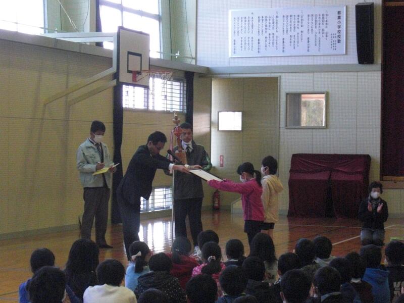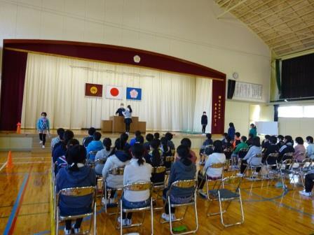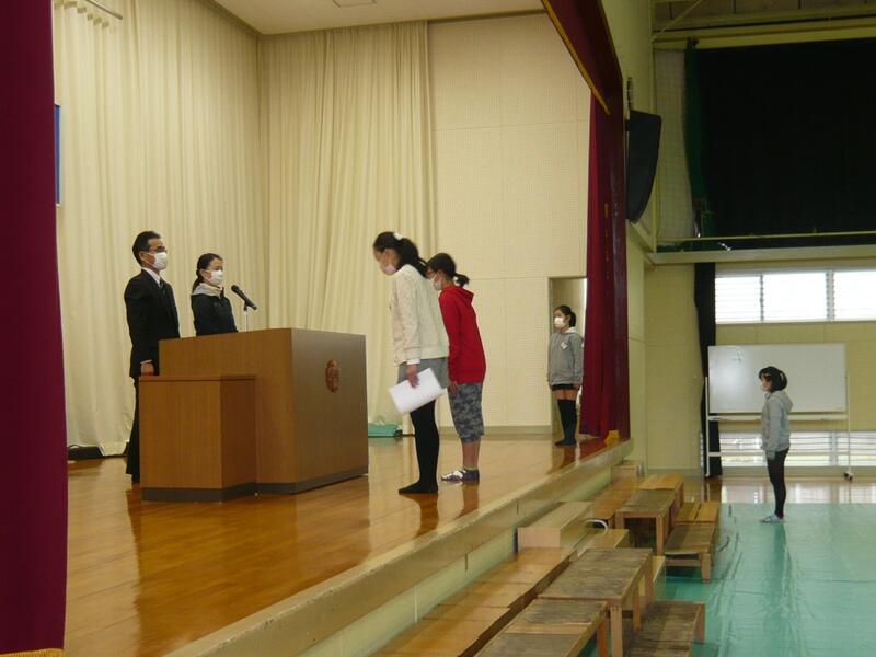 表彰の時間は、スポーツ少年団(剣道)の子どもたちや絵画で賞を取った子どもたち、2月の給食で残食0だった学級の表彰が行われました。(Sー1やK-1などの表彰は3月21日に予定されている表彰集会で行われます。)