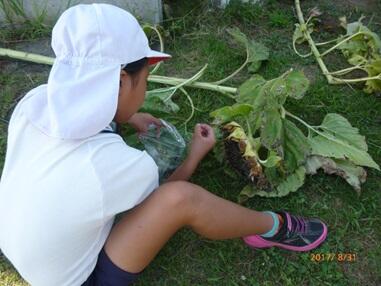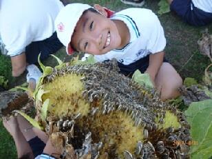 何百という種を見て、子ども達は大喜びです。ビニール袋にいっぱい収穫し、持って帰りました。何粒かは学校で保管し、来年、また3年生(現2年生)に受け継がれます。
