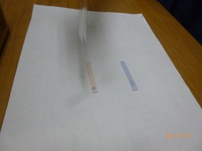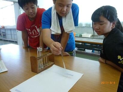 「塩酸」や「水酸化ナトリウム水溶液」をリトマス紙につけるとあっという間に色が変化し、子ども達も驚きの声をあげていました。