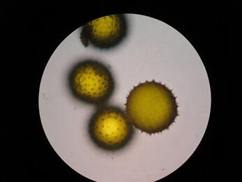 とげのあるカボチャの花粉(受粉しやすいような形状)にピントがあったときは、「すご~い!」と感動の声を上げていました。